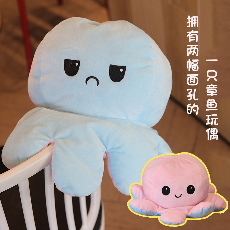 Cute flip octopus paparazzi piste bifacial expression flip octopus wool suede toy change face small octopus doll