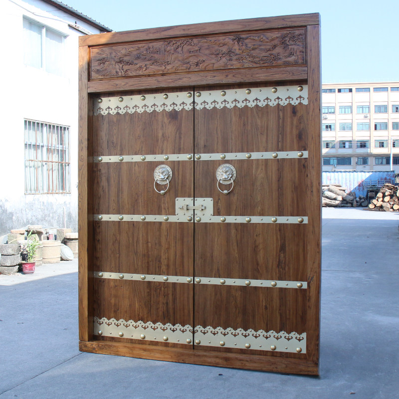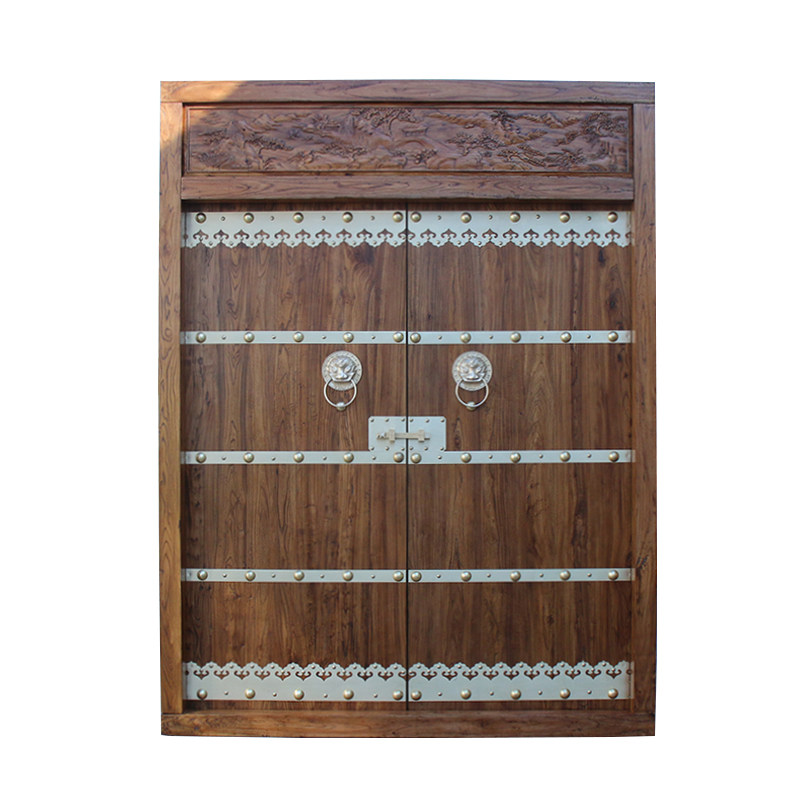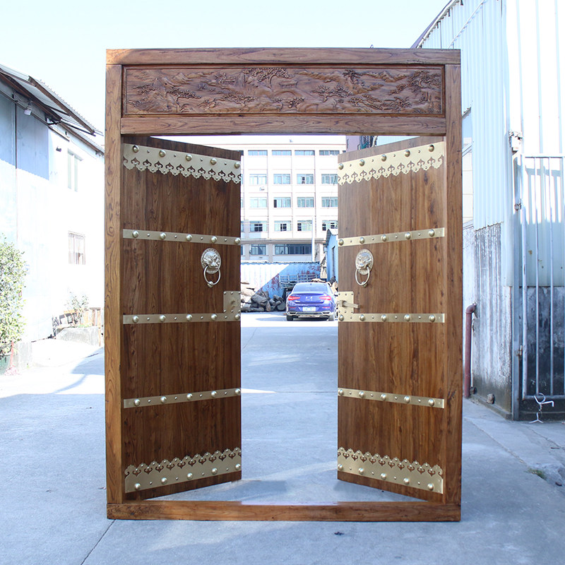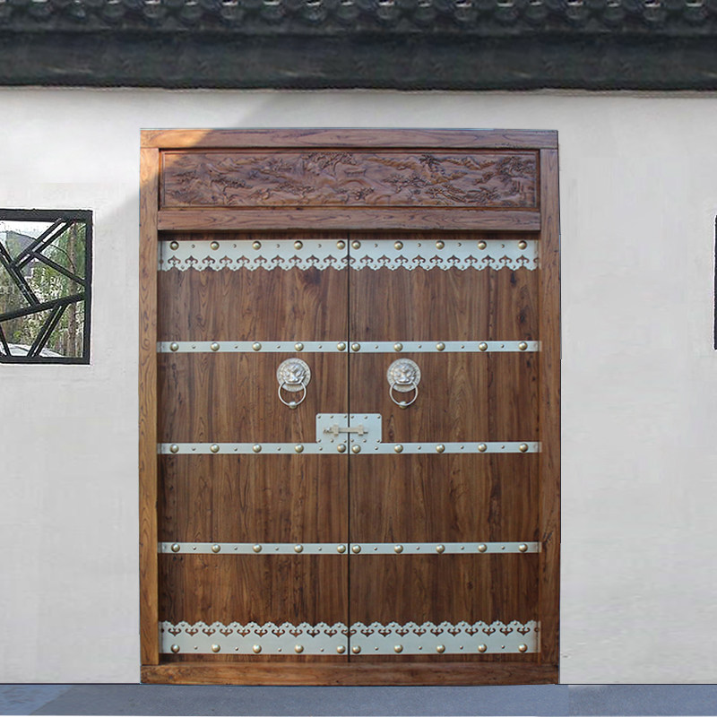 Rural Gate Double Door Imitation Ancient Engraving Gate Building Yard Wall Retro Chinese Style Courtyard Home Village Security Door
