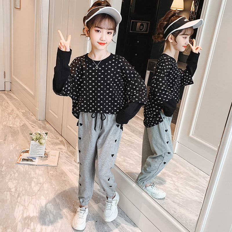Girls' spring and autumn pants 2021 new spring clothes children's sports pants middle-aged children's spring Western style casual thick cotton pants for outer wear