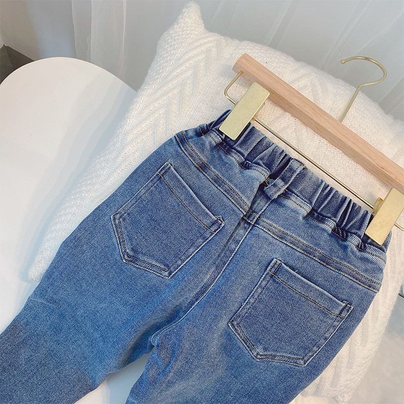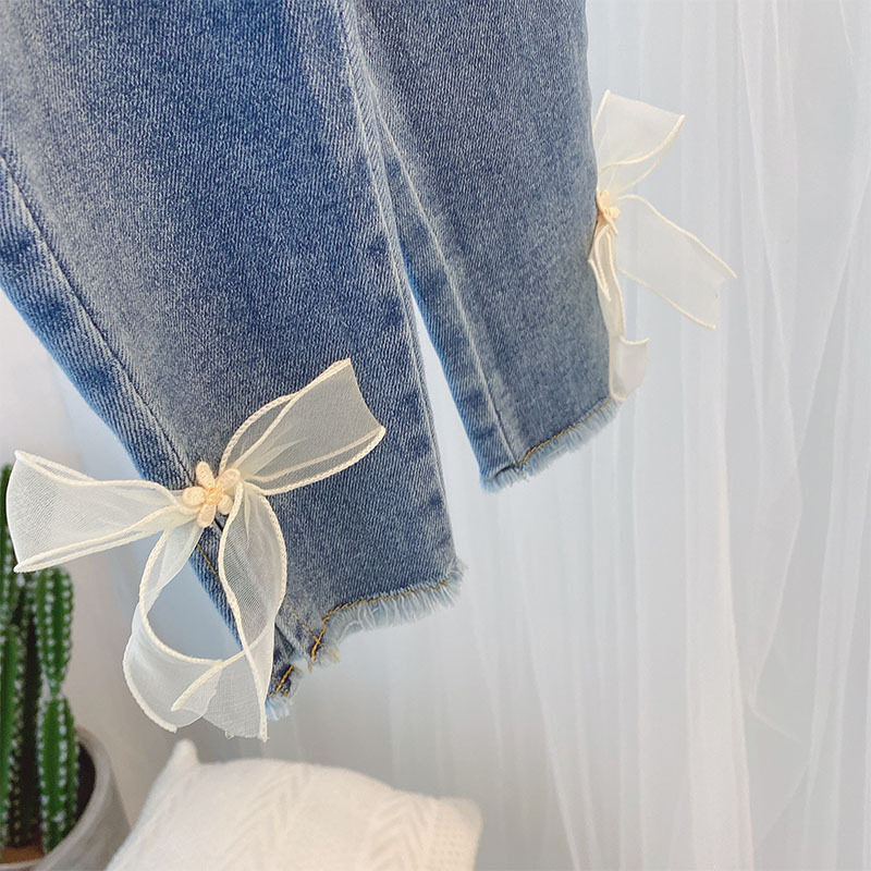 Girl's micro horn pants little girl jeans sweet and beautiful butterfly knot net red spring style 100 lap light blue long pants