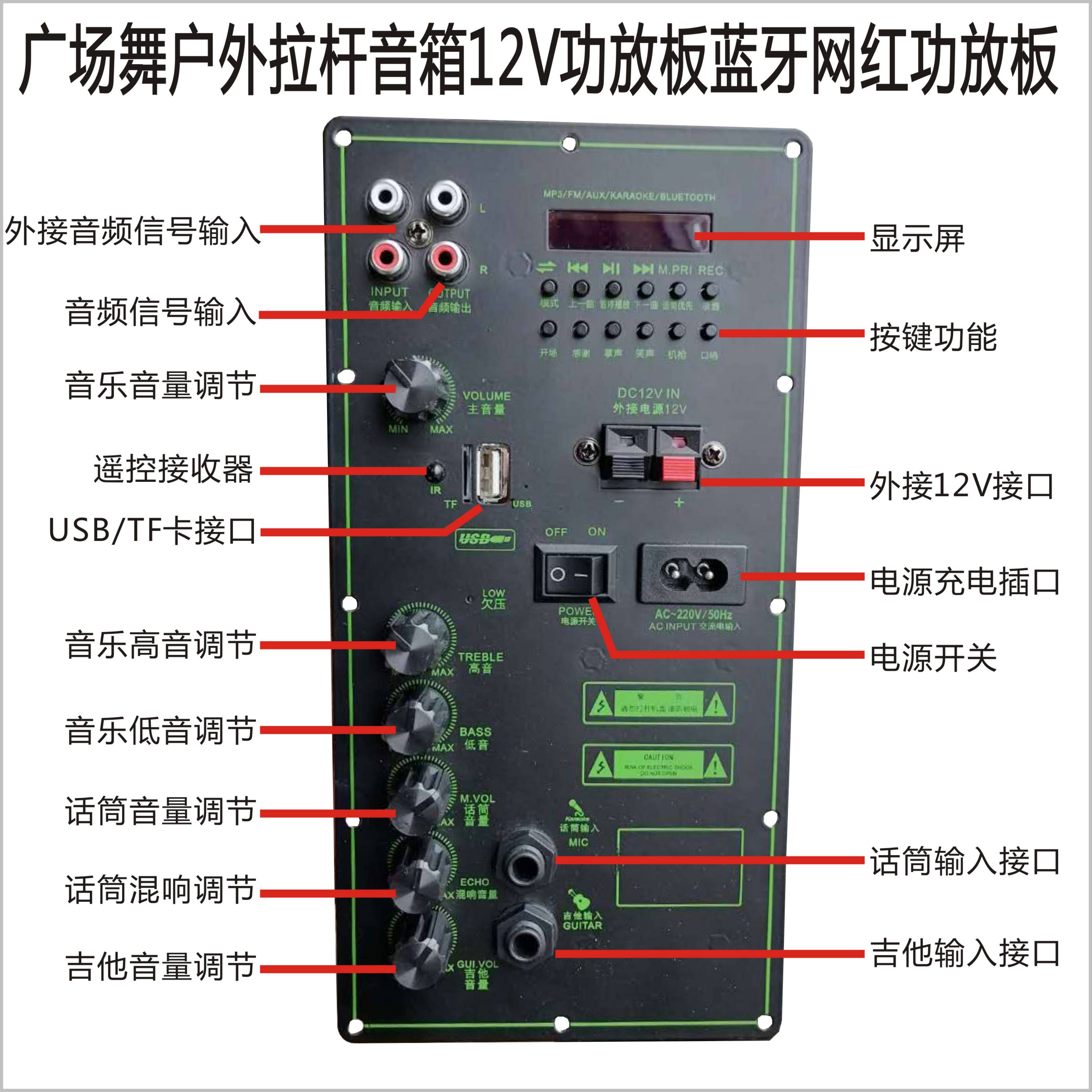 12V battery 220V high power square dance Bluetooth amplifier portable pull rod mobile network red amplifier