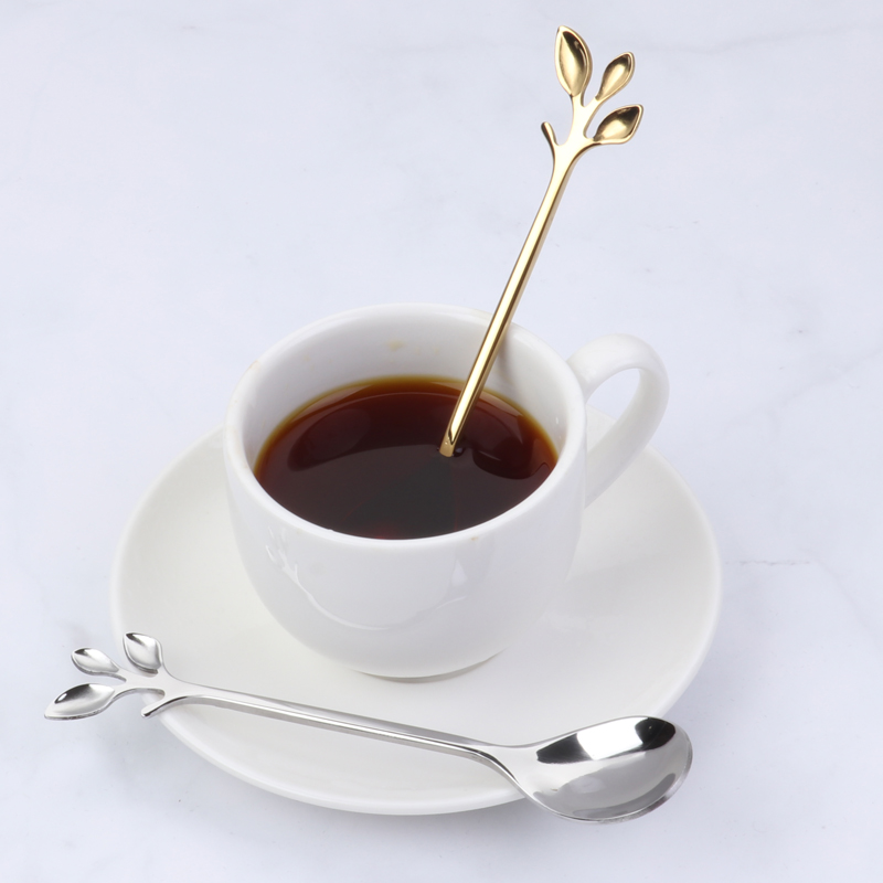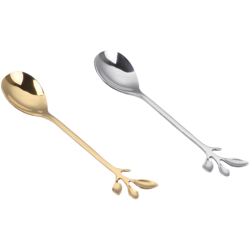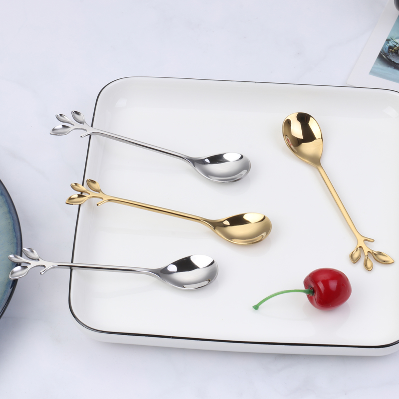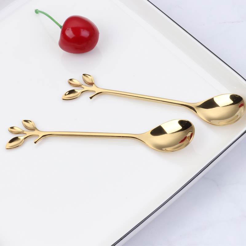 Light luxury coffee spoon net red leaf fork small spoon creative dessert spoon cute ice cream stirring long handle spoon ins