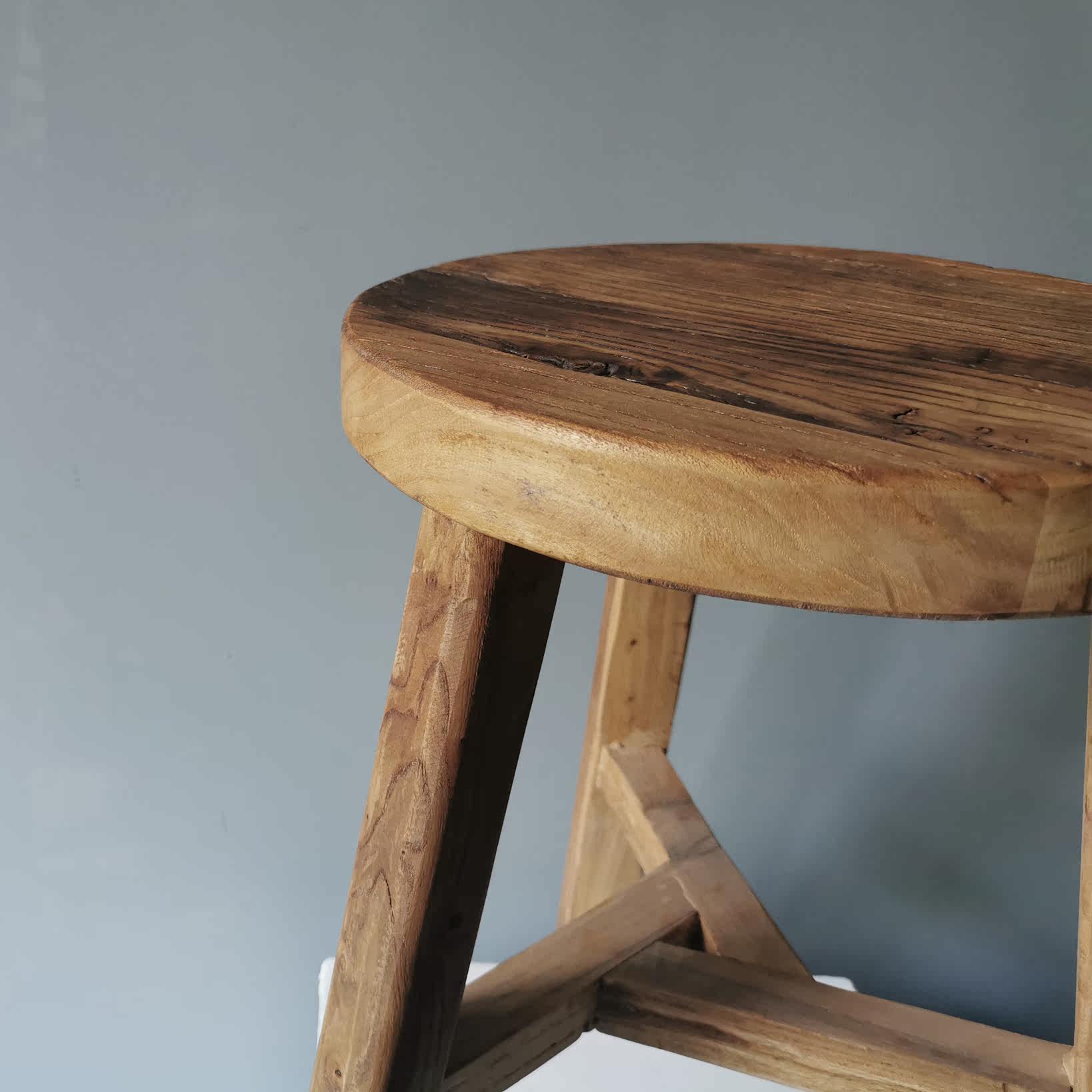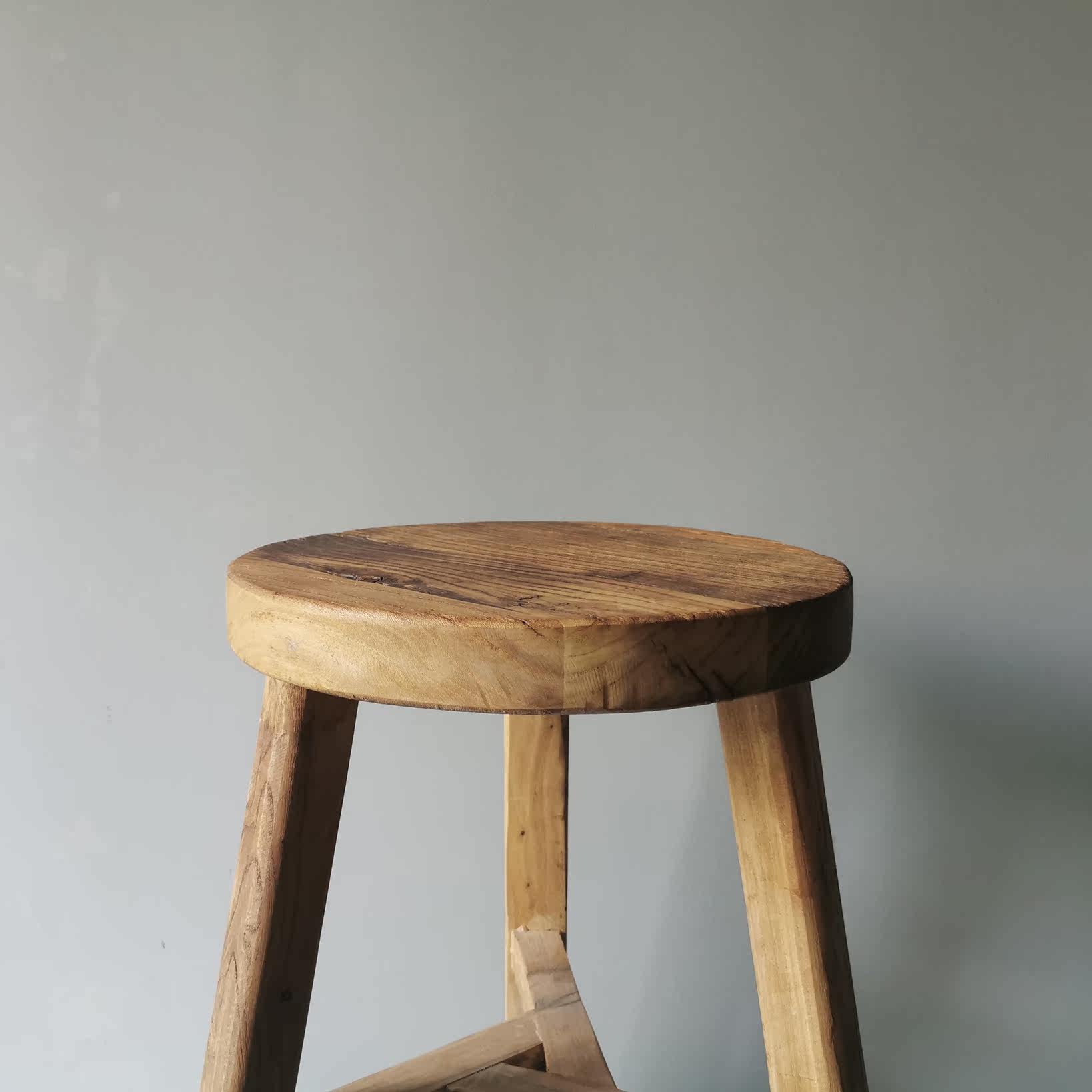Collection of Things) Silent Wind Solid Wood Round Stool Retro Elm Wood Furniture a few short stool Hotel Home Residence Soft-mounted Props