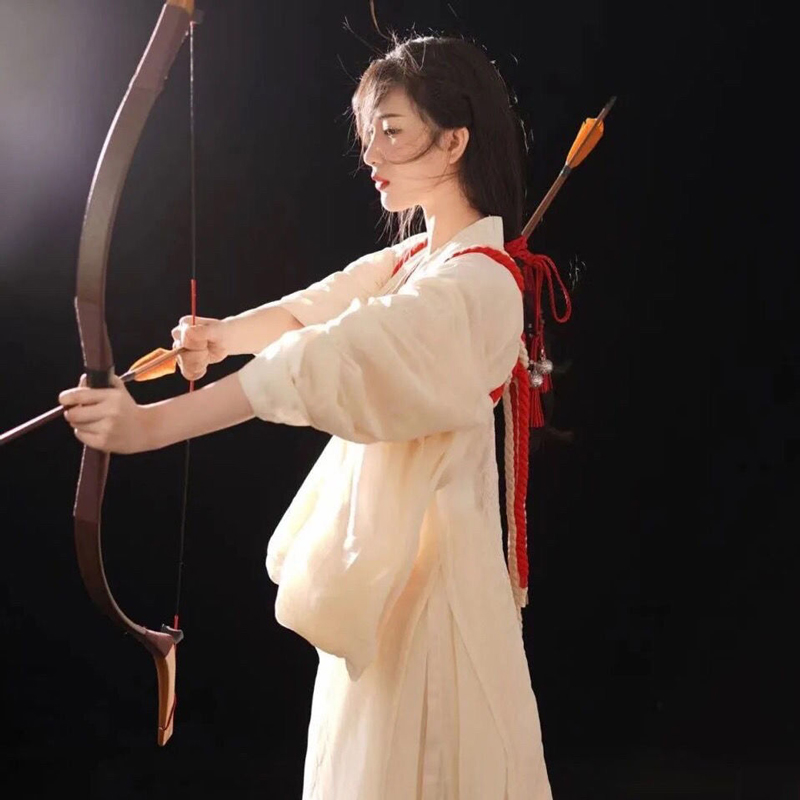 Single loop (red and white rope) (chiffon style) Shenming Hanfu (chiffon style) Shenming Hanfu head rope red and white loop bow and arrow three arrows quiver (props are non-refundable) (cotton style) Shenming Hanfu