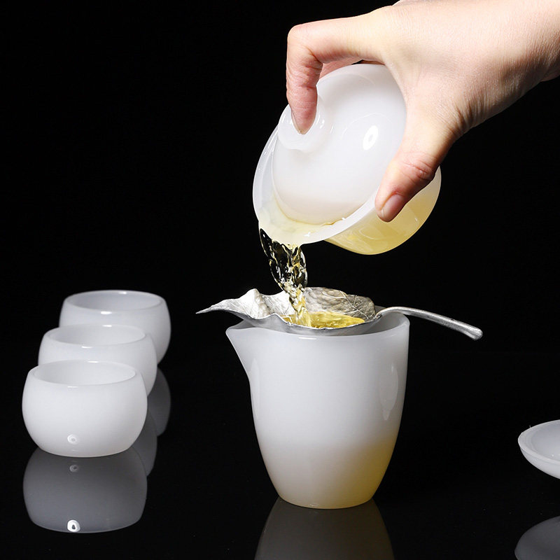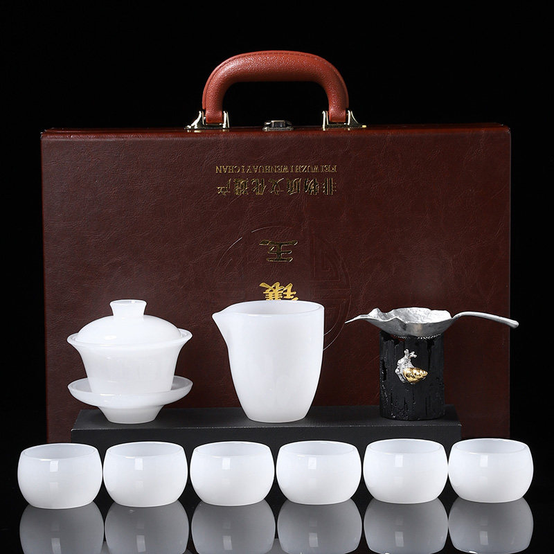 Glass kung fu tea set jade porcelain Jade home simple set of high-end gift box gift office