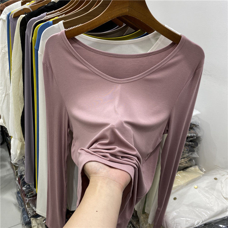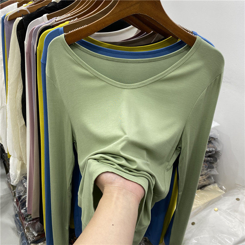 European goods all-match mask thread V-neck long-sleeved T-shirt women's 2022 spring new inner thin bottoming shirt T-shirt top