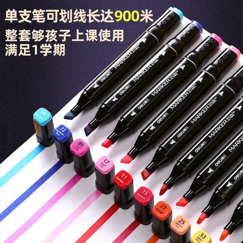 Deli marker pen for art students 48-color genuine set soft-headed oily students double-headed hand-painted animation graffiti design professional architecture 36-color 60-color 80-color painting color pen full set