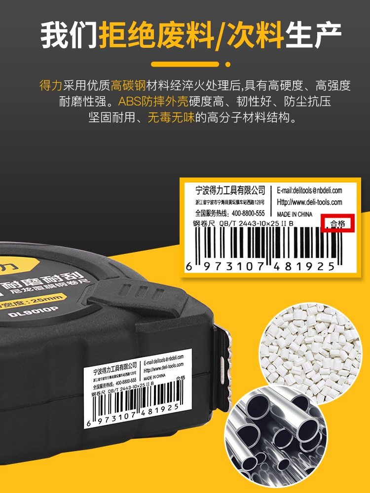Deli thickened steel tape measure 3 m 5 m 7.5 m 10 household m ruler stainless steel plus hard ruler box ruler rim
