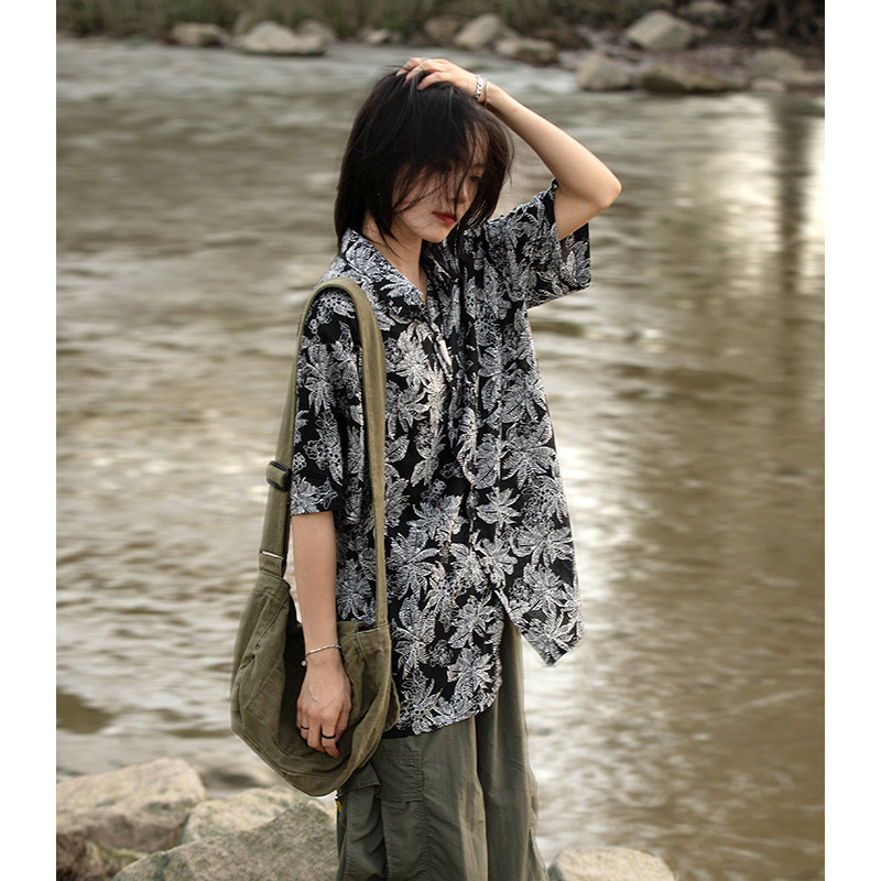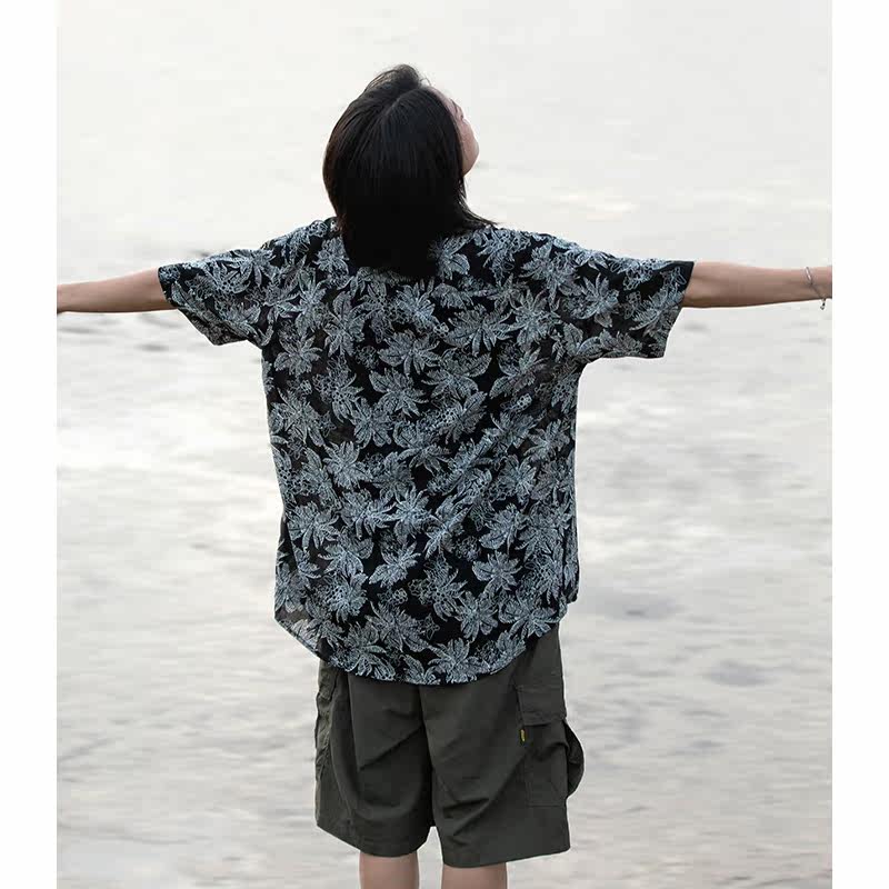 OFFBORD Hawaiian holiday style short-sleeved floral shirt men's summer thin Japanese cityboy men's shirt