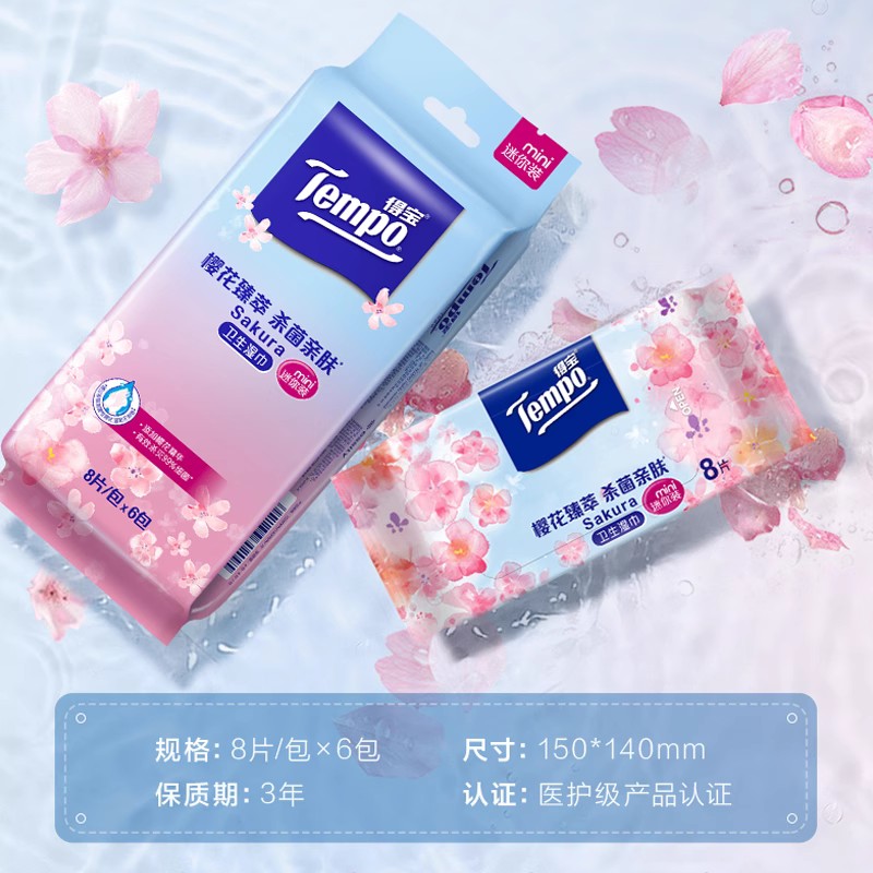 Tempo Debao Wet Pastel sterilization Portable mini baby baby with hygiene wipes 8 tablets