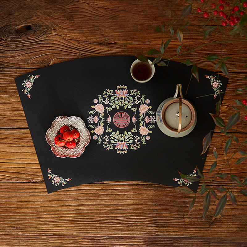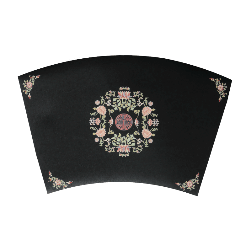 G84-Qing Palace Tuanhua - Fan-shaped leather black placemat