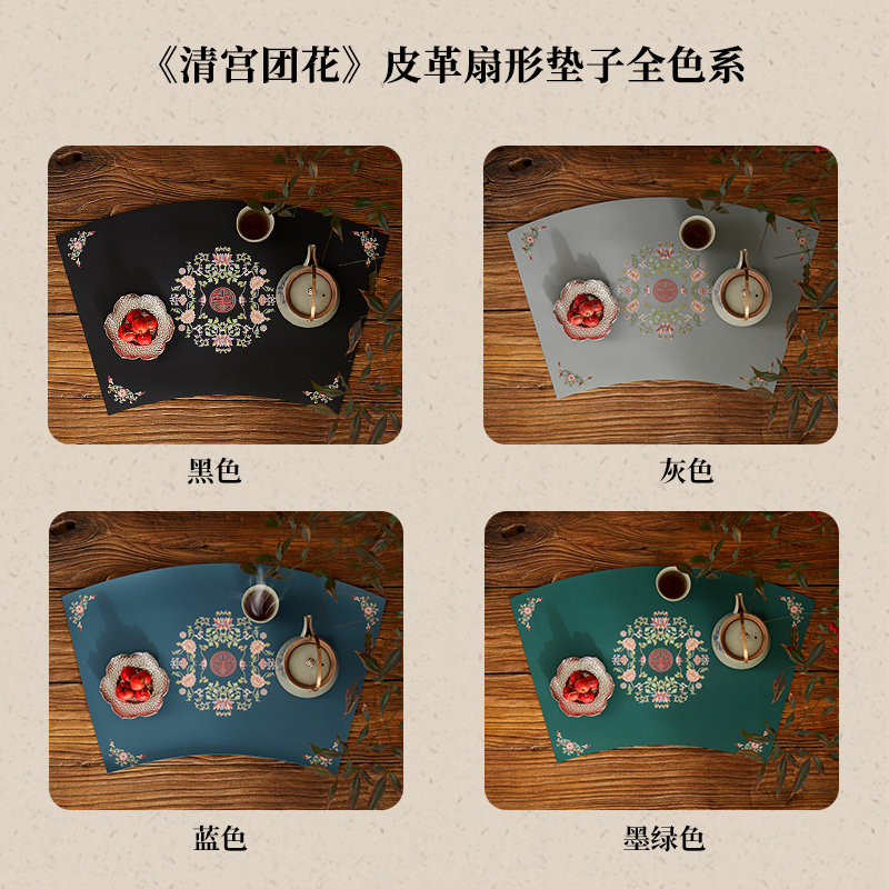 G84-Qinggong Tuanhua - Round Leather Black Placemat G84-Qinggong Tuanhua - Round Leather Gray Placemat G84-Qinggong Tuanhua - Round Leather Blue Placemat G84-Qinggong Tuanhua - Fan Leather Dark Green Placemat G84-Qinggong Tuanhua - Fan-shaped Leather Blue Placemat G84-Qinggong Tuanhua - Round Leather Dark Green Placemat G84-Qinggong Tuanhua - Fan-shaped Leather Black Placemat G84-Qinggong Tuanhua - Fan-shaped Leather Gray Placemat