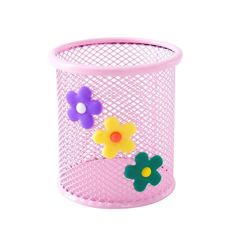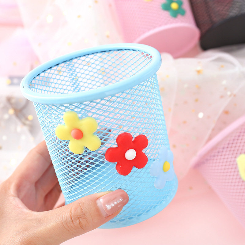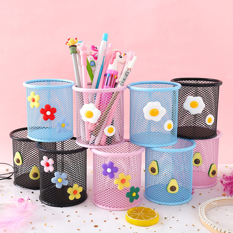 Cartoon cute super cute pen holder metal hollow grid creative fashion office creative fashion desktop decoration storage box simple students with large-capacity multi-function pen insert stationery storage tube
