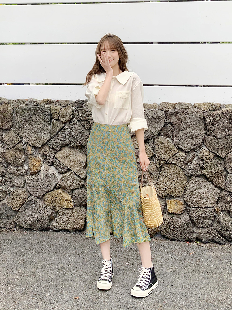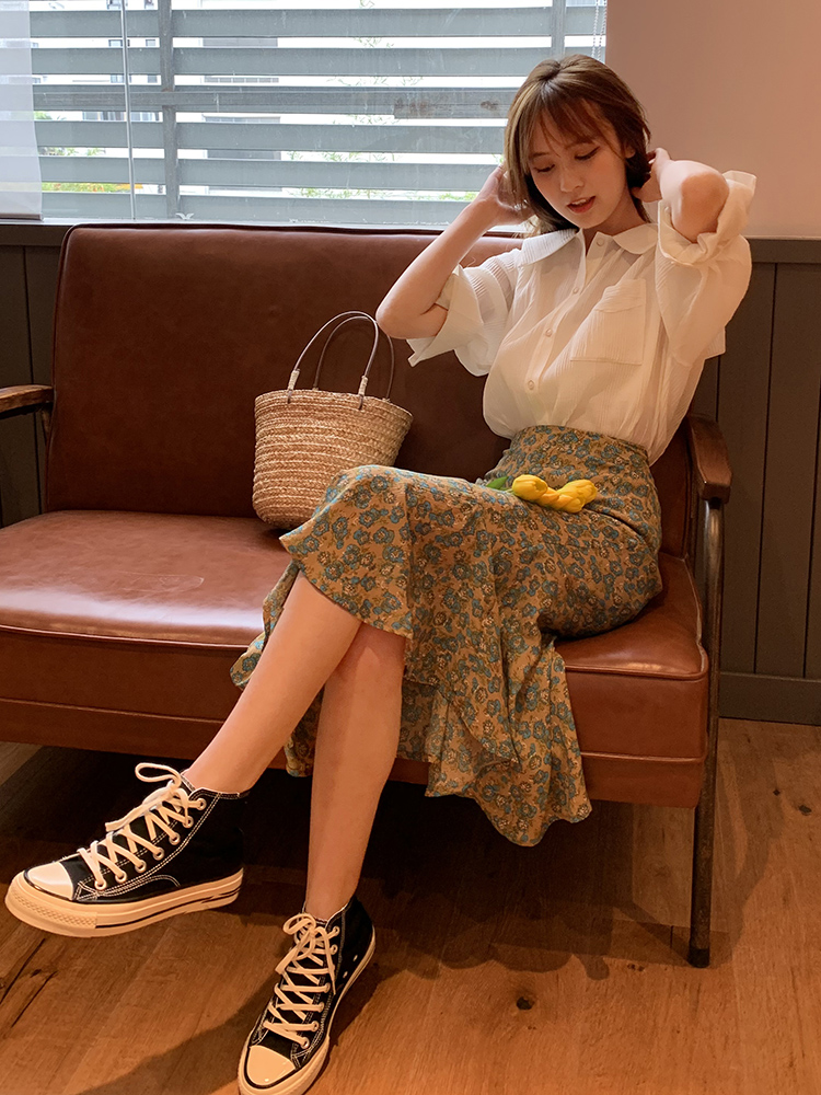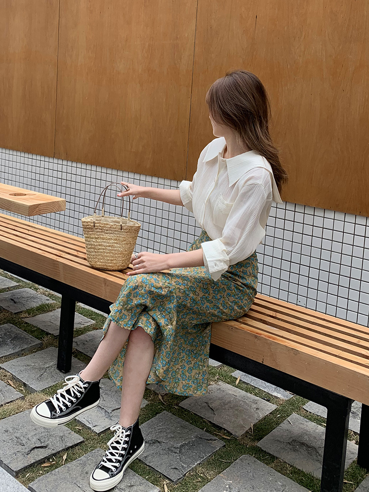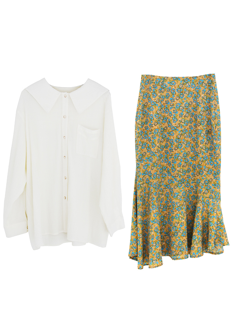 Lecea Alice shirt suit skirt two-piece 2022 summer new gentle style age-reducing floral skirt