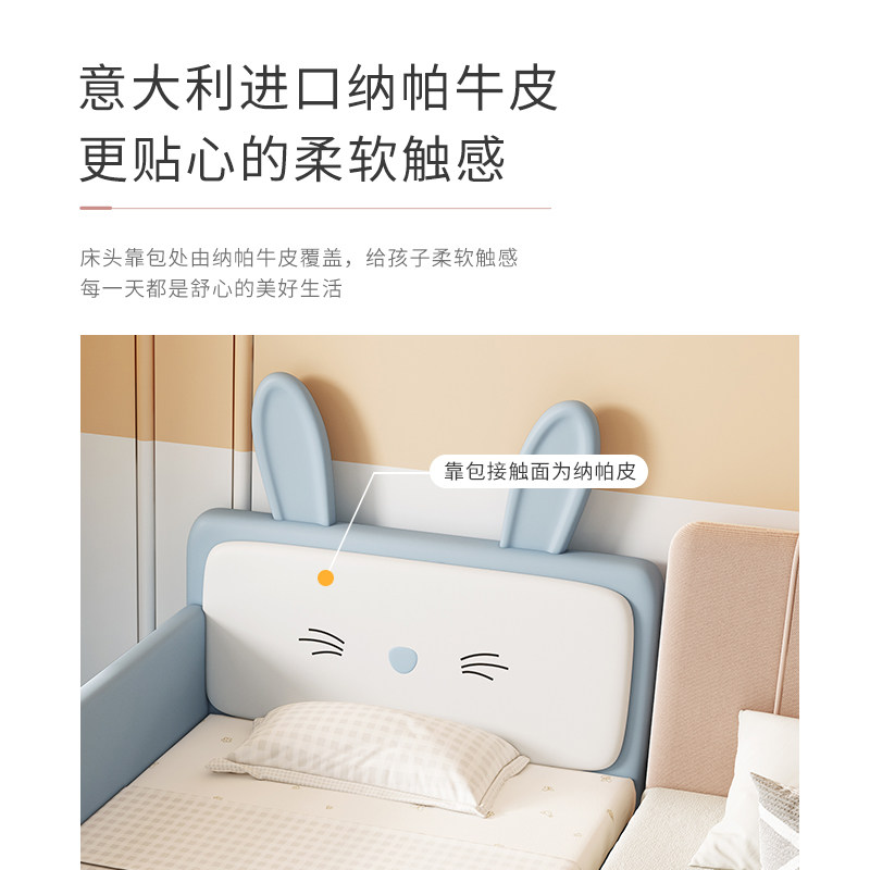 Leather bunny children's splicing bed with guardrail boy single bed widening bed baby cot adult side bed