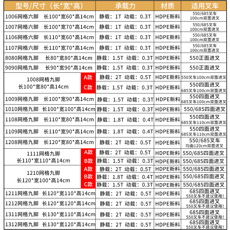 Grid nine-legged plastic pallet stacker warehouse floor mat moisture-proof pallet floor pallet stack shelf card board