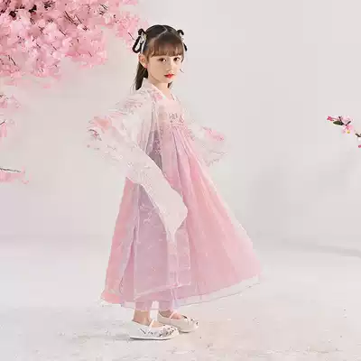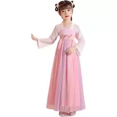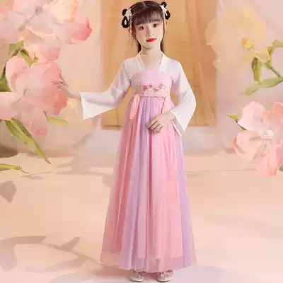 Girls Hanfu Super Immortal Children's Antiquities Tang Coats Super Fairy Girls Guzheng Performance Clothing Spring and Autumn Dress