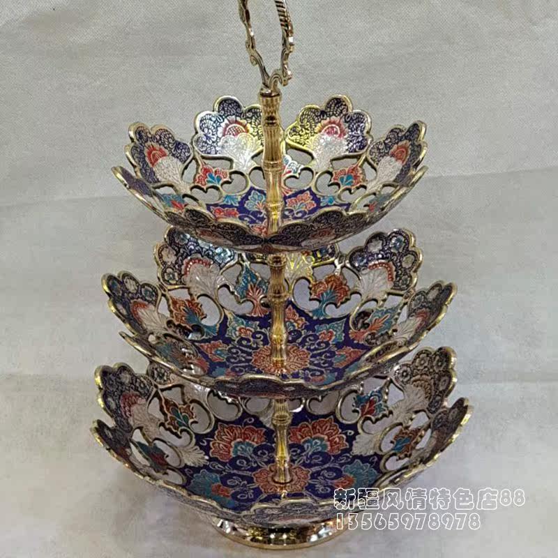 Triple-layer fruit basket Pakistan bronze sculpted dried fruit case multilayer fruit case