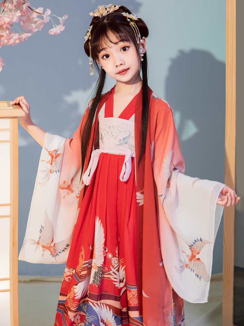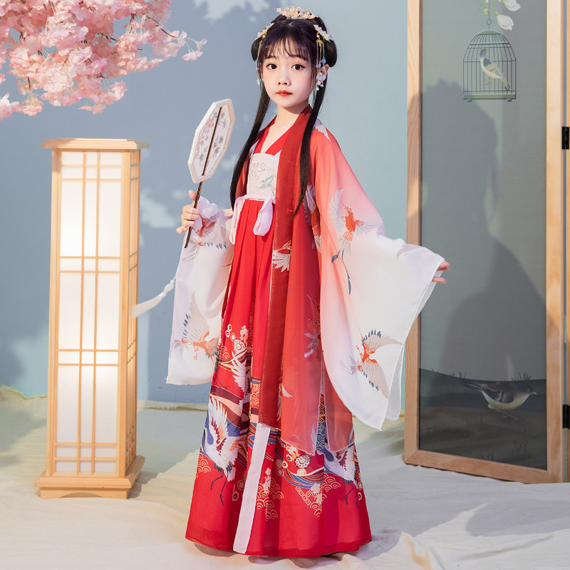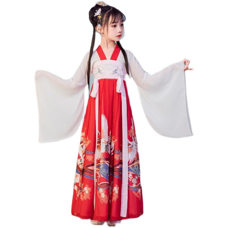 Girl's ancient dress Han suit superfairy China Wind Children Guzheng Skirt Flutter little girl Tang loaded with foreign dress Long sleeves