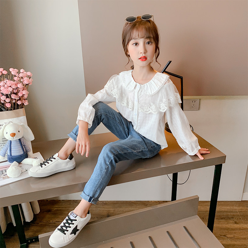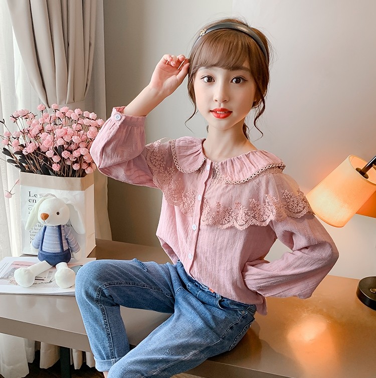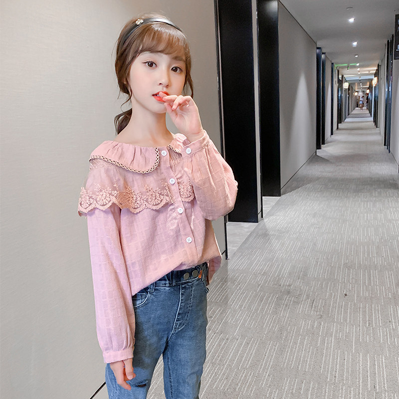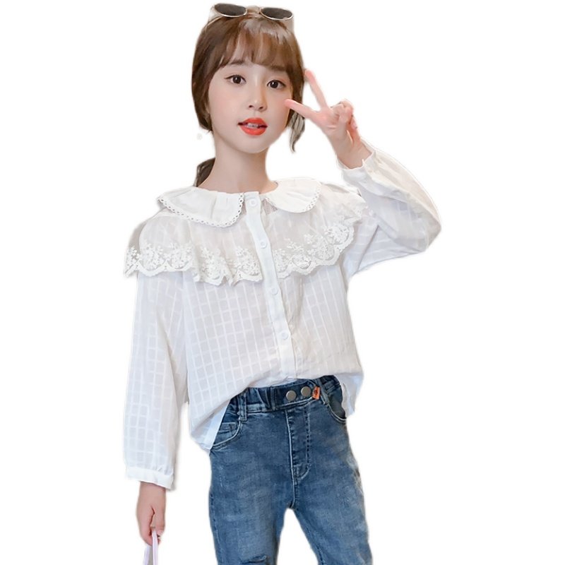 2022 Spring Dress New Girl Foreign Pie Long Sleeve Doll Cardiovert Blouse Blouse Baby Cotton Shirt Mesh Red Shirt Boy Clothing