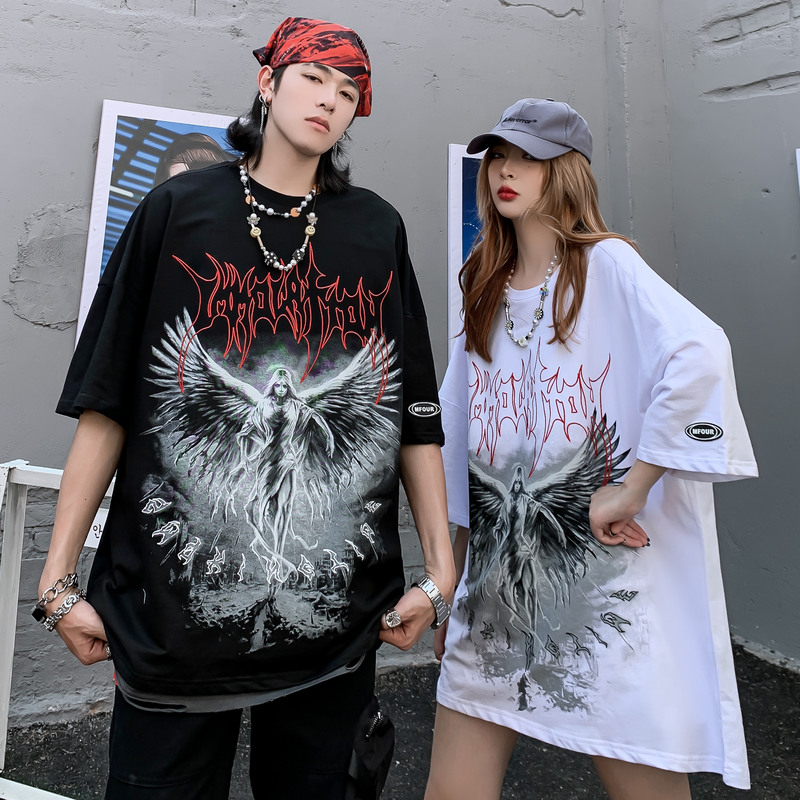 chic bishop high street dark style personality printed T-shirt men and women loose street hip-hop national tide summer dress