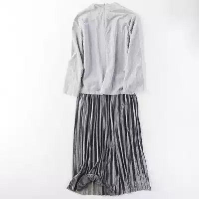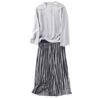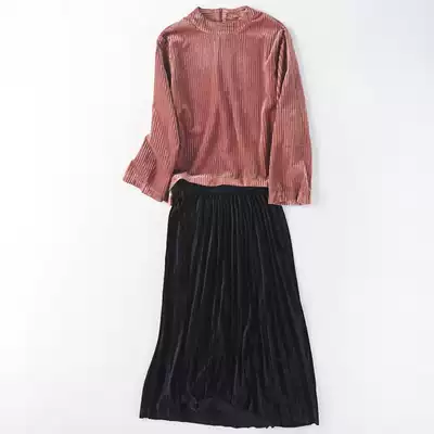 61205 spring new women's round neck pullover long sleeve top elastic waist half skirt velvet two piece set 32