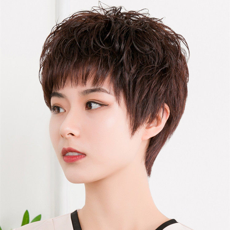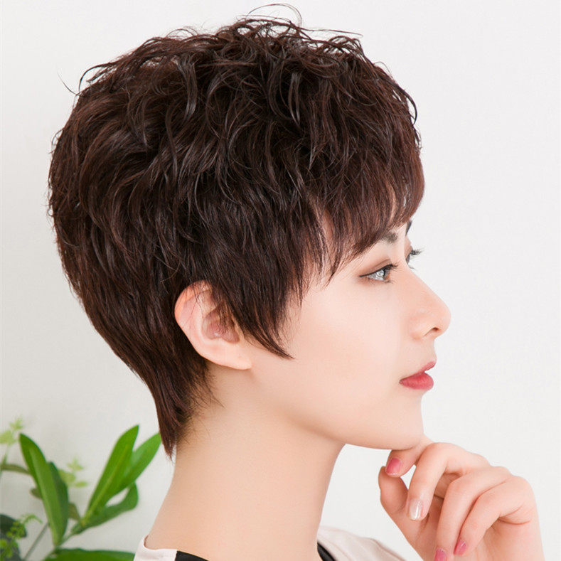 Wig Woman Short Curly Hair Fashion Mom Short Hair Middle Aged Live-action Hair Silk Full Top Fake Headgear Wig