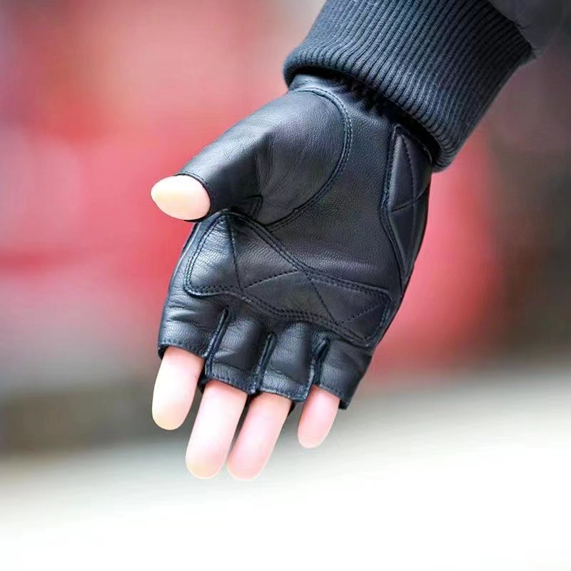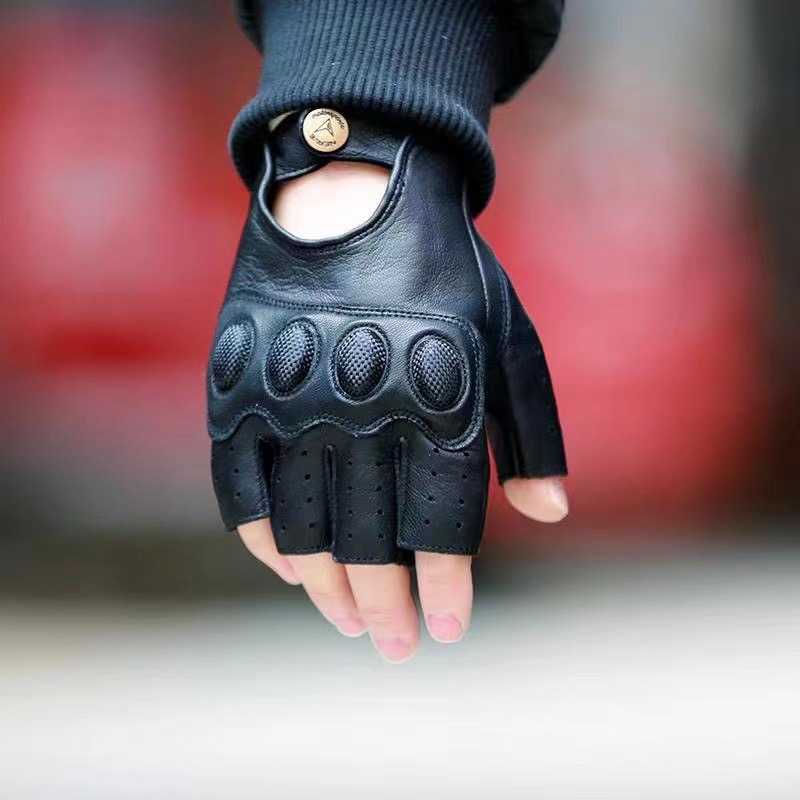 NERVE Summer Retro Locomotive Halffinger Gloves for men and women Locomotive Racing Knight Sheep Leather Anti-Wear Four Seasons