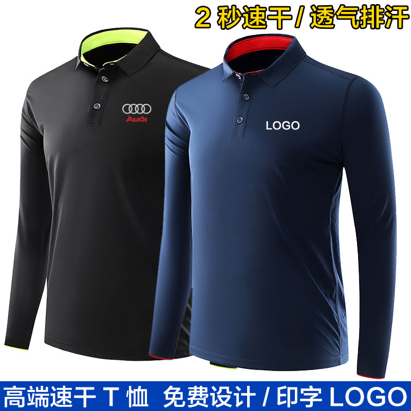 Quick-drying long-sleeved polo shirt custom logo sports sweat-wicking ice silk T-shirt outdoor breathable sunscreen overalls printing