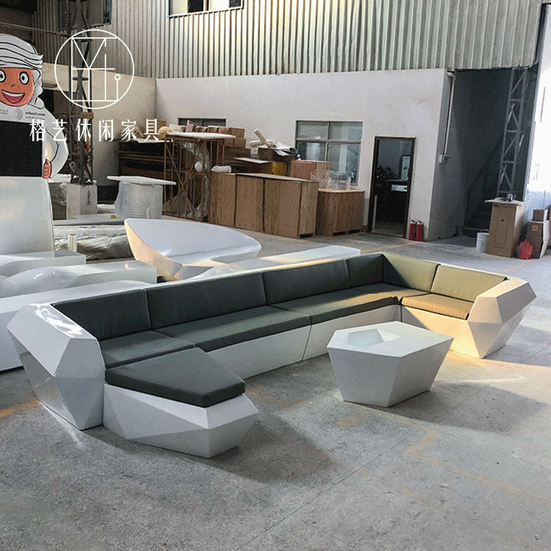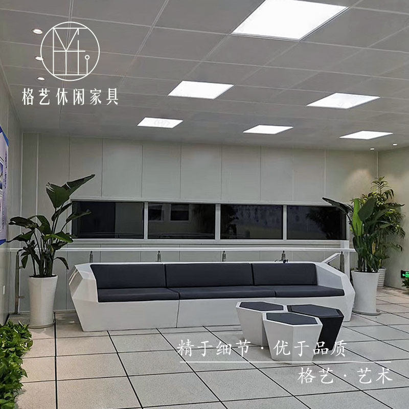 Glass Fiber Rhomboid Combined Sofa Office Mall Villa public Leisure Bench Creative Beauty Chen-set seat