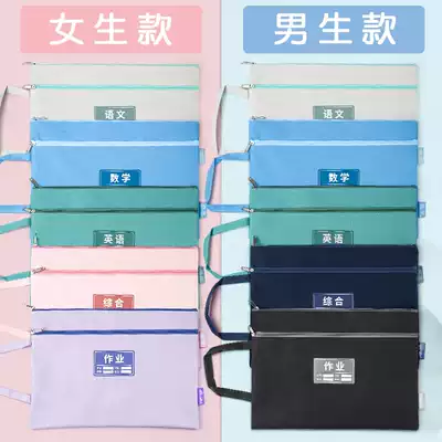 Subject classification homework bag Chinese mathematics English branch file bag a4 information bag primary school students use double-layer book test paper textbook storage bag book bag portable canvas zipper large capacity