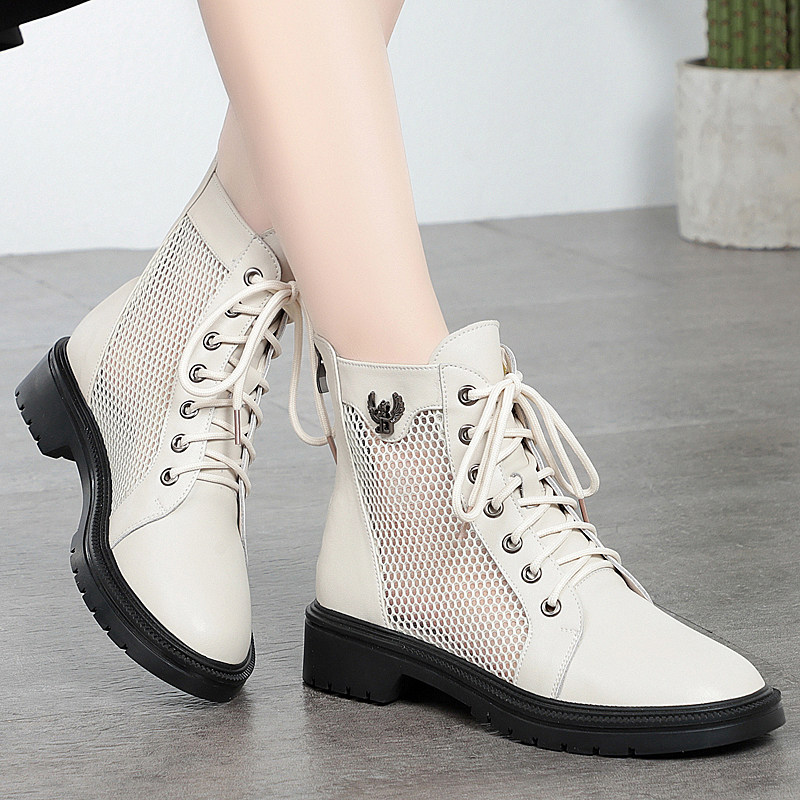 Summer foot Serie connet yarn Martin boots female new tennis boots Genuine Leather Boots Hollowed-out Cool Boots Slim-in-the-Boots Women Shoes