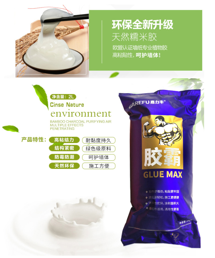 2KG glutinous rice glue can be affixed 3 to 4 rolls wallpaper 1L base film can brush 3 to 4 rolls of wall area (base film is not glue to protect wall) sticky rice gum base film suit