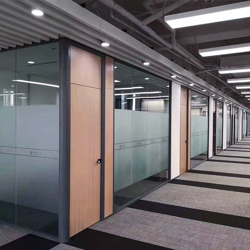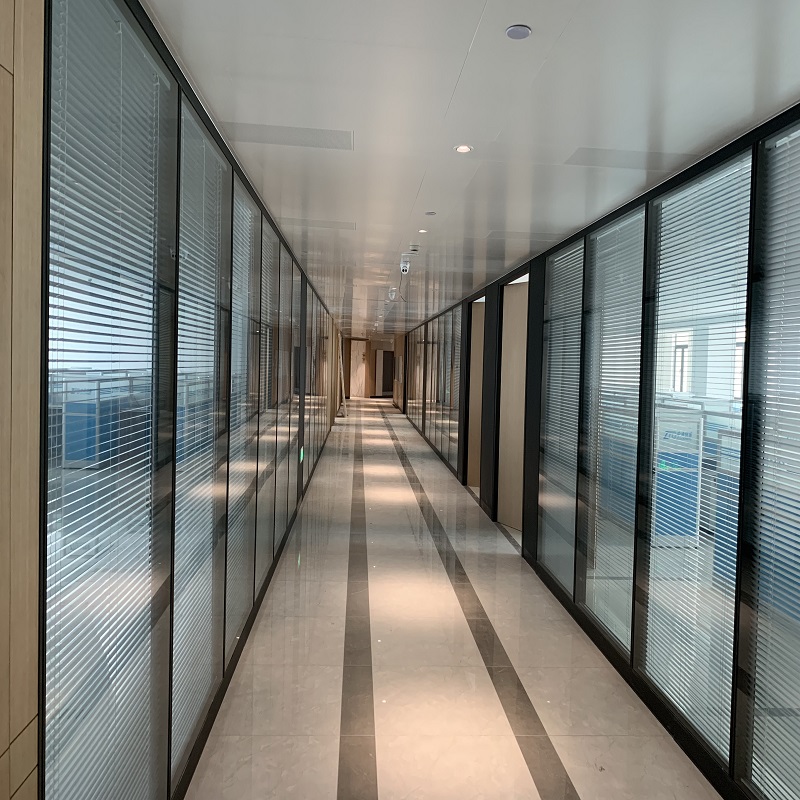 Office glass partition wall tempered glass aluminum alloy shutter double-layer high partition sound insulation wall decoration customization
