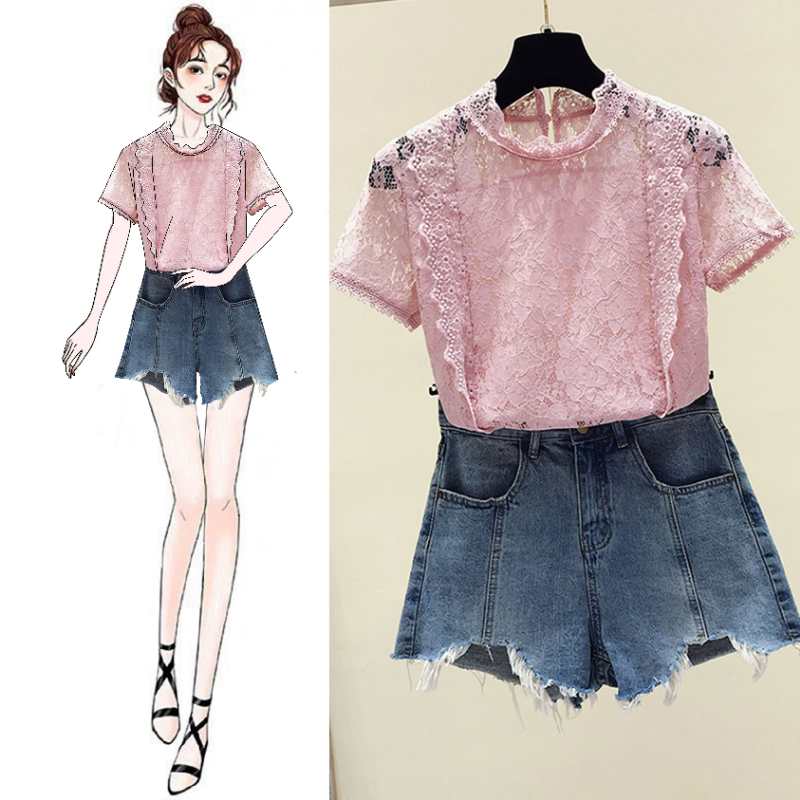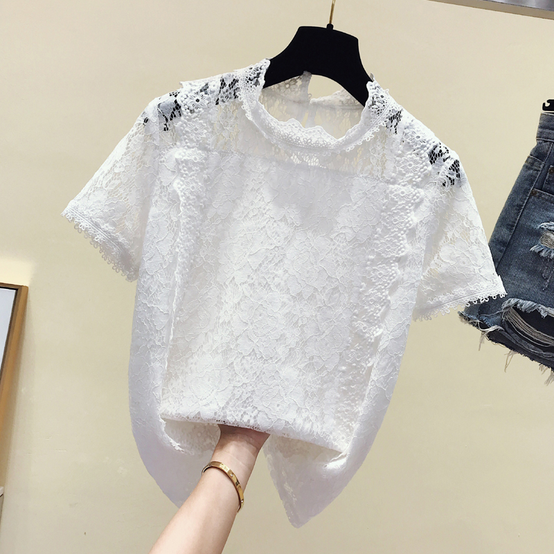 Hong Kong tide brand 2021 summer new women's lace round neck top personality temperament hollow short-sleeved T-shirt
