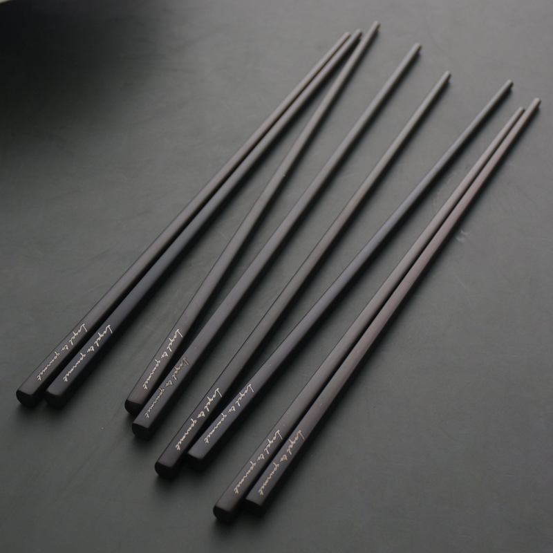 304 stainless steel black chopsticks household vintage English alphabet anti - slip high temperature chopsticks eat square metal chopsticks