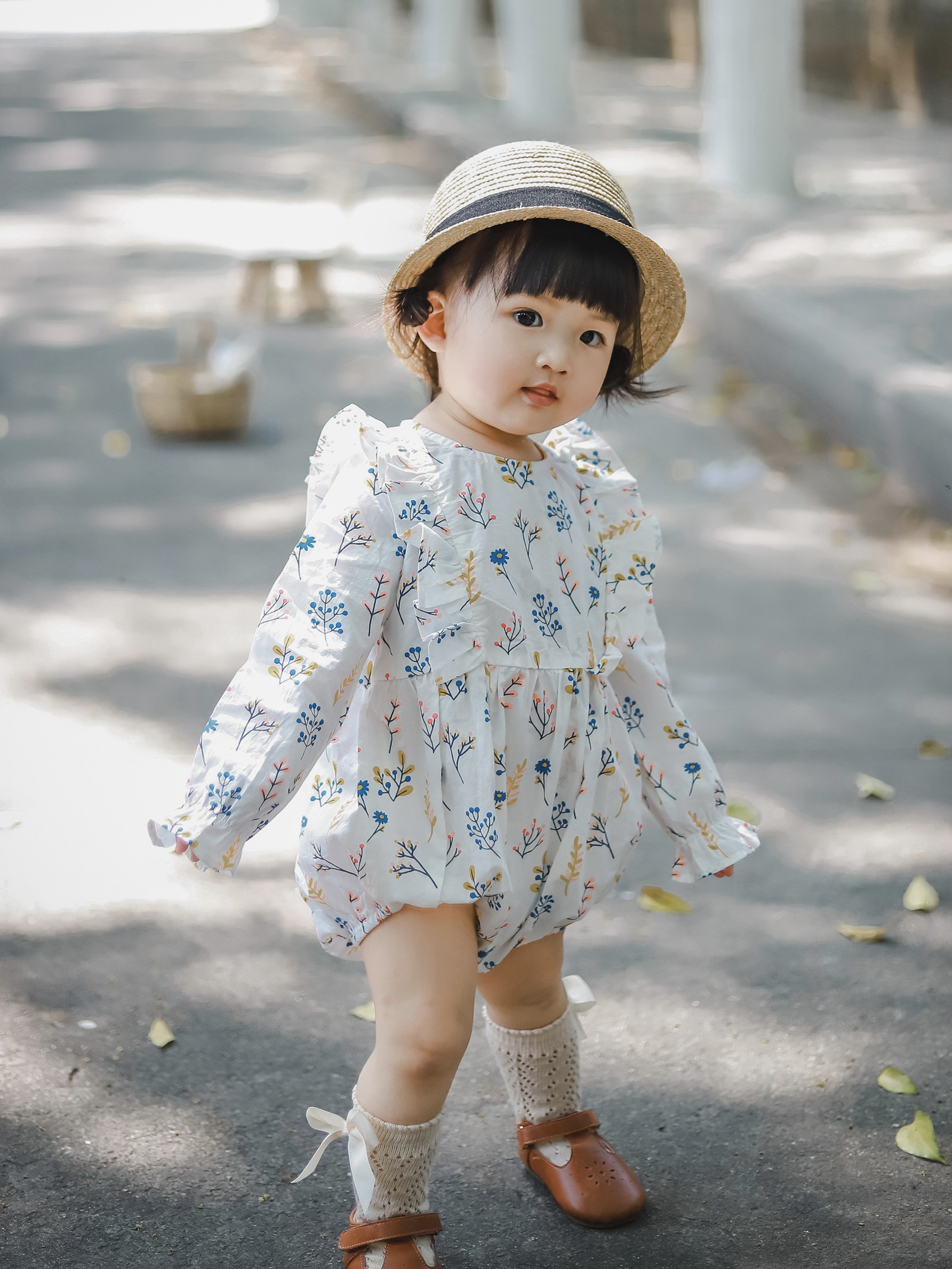 Chuxu original 2022 early autumn new girl small fresh floral dress baby cotton romper thin romper