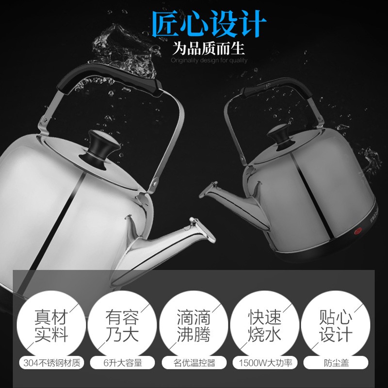 Rongshida electric kettle household automatic power-off 304 stainless steel 6L5 large-capacity spherical kettle oversized