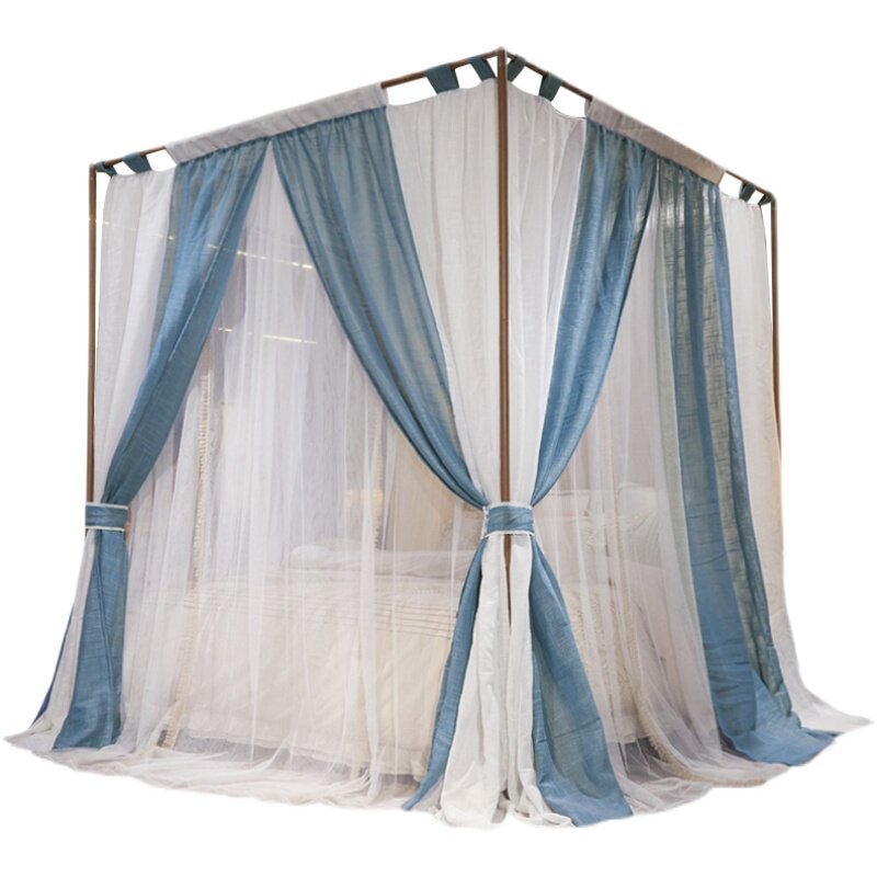 Eurostyle Wind Shield Linen Bed Slow Home Bedroom Double shade Shading Dust Free to install Palace Nets bed curtain one-piece