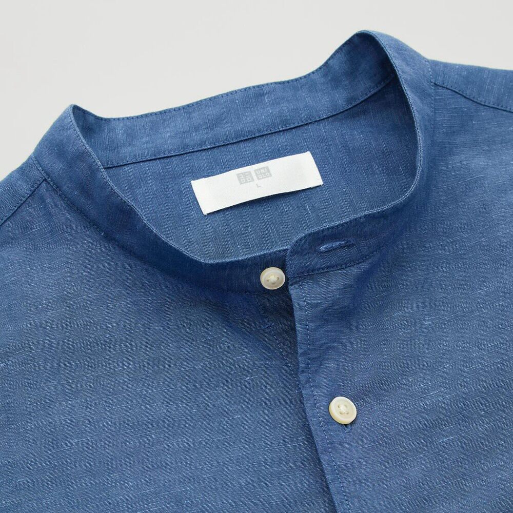 Uniqlo men's hemp cotton stand neck shirt (short sleeve summer casual thin and breathable) 436515 436516