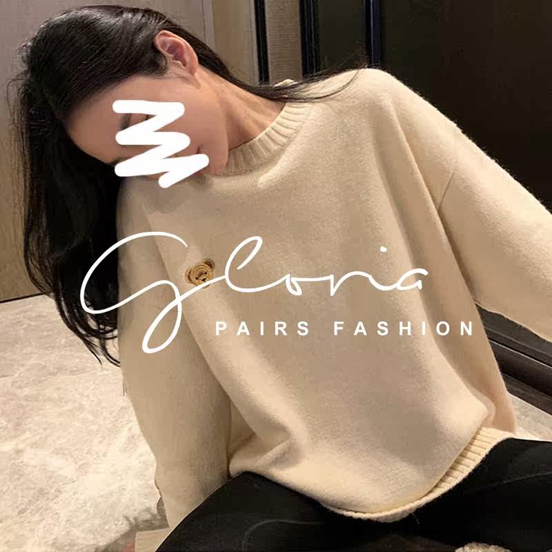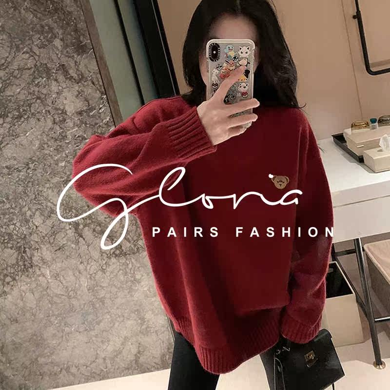 Sandro asw red sweater women's loose 2021 spring new lazy style Korean casual knitted top trend