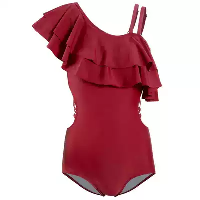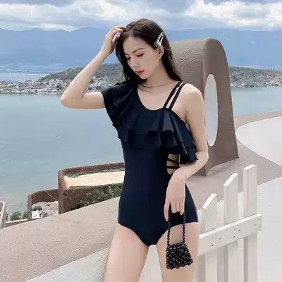 White swimsuit women's summer ruffle conservative one-piece sexy bikini belly cover thin suspender swimsuit 2021 new