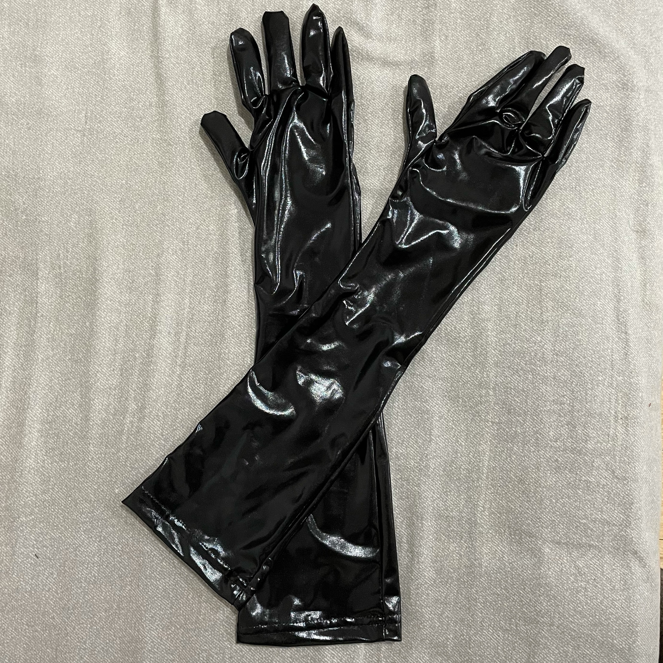Sexy latex ammonia black leather bar performance long arm gloves sex transparent ultra-thin sheer cut-out silky nightclub