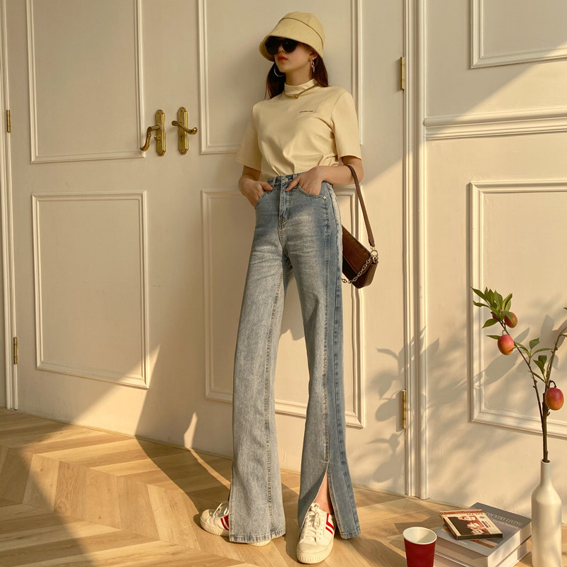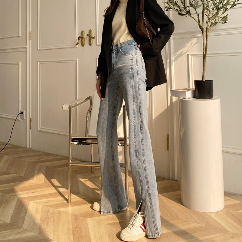 170 Lengthened Version of Split Jeans for Women Tall 175 Wear with Micro-Flare High Waist Mopping Pants Korean Spring and Autumn