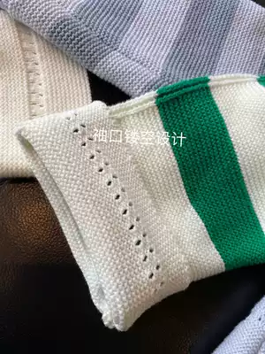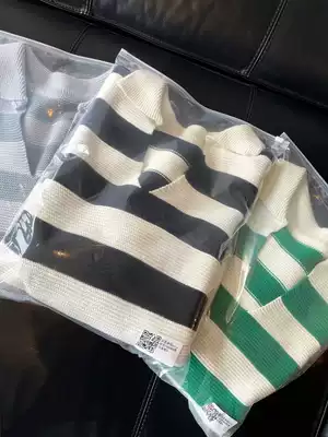 fashionable version of the high ~ thin V collar color horizontal striped women polo short sweater early Spring New