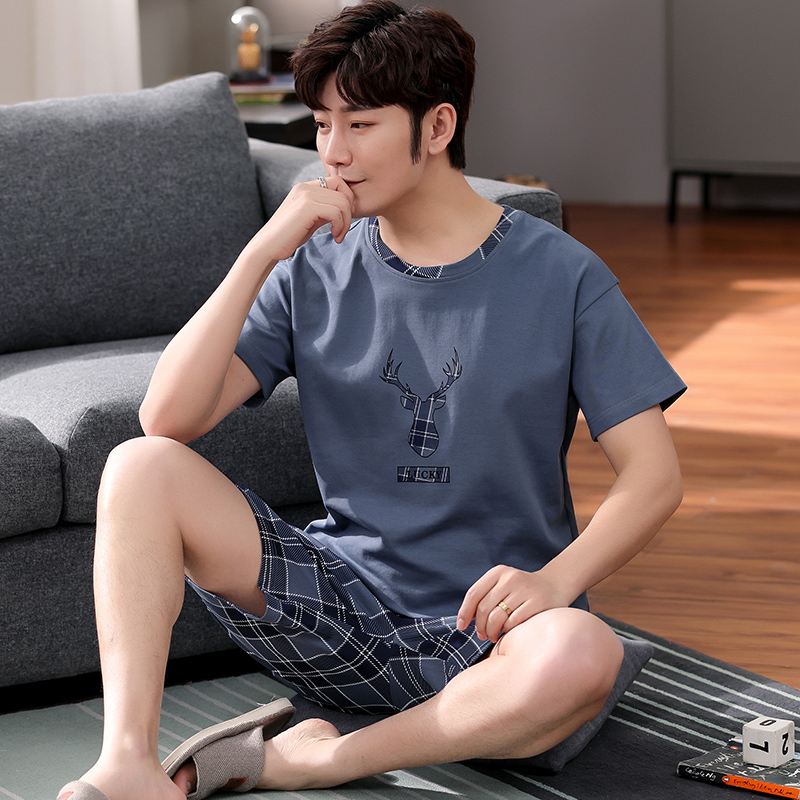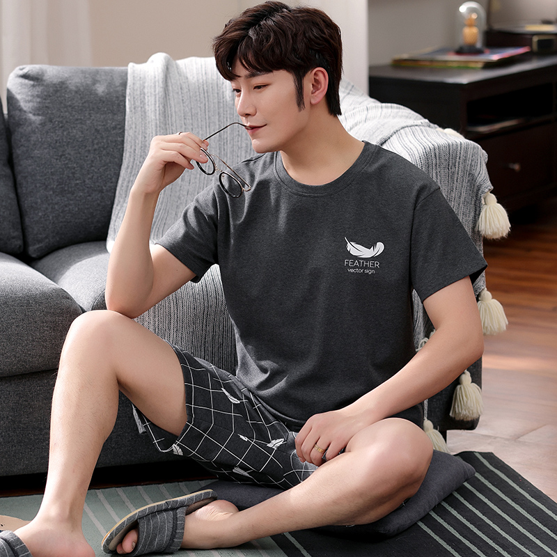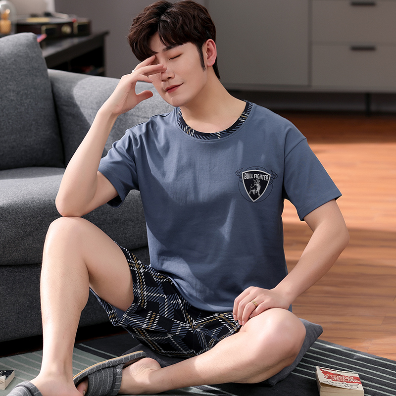 Summer pajamas male cotton short sleeve suit men spring and autumn thin thin and large number students can wear home clothes outside