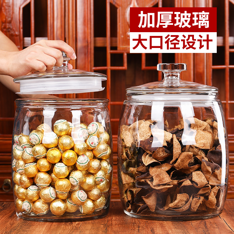 Thickened glass sealed tea cans Commercial tangerine peel storage cans Large grain storage cans Dry goods display bottles Rice cylinders
