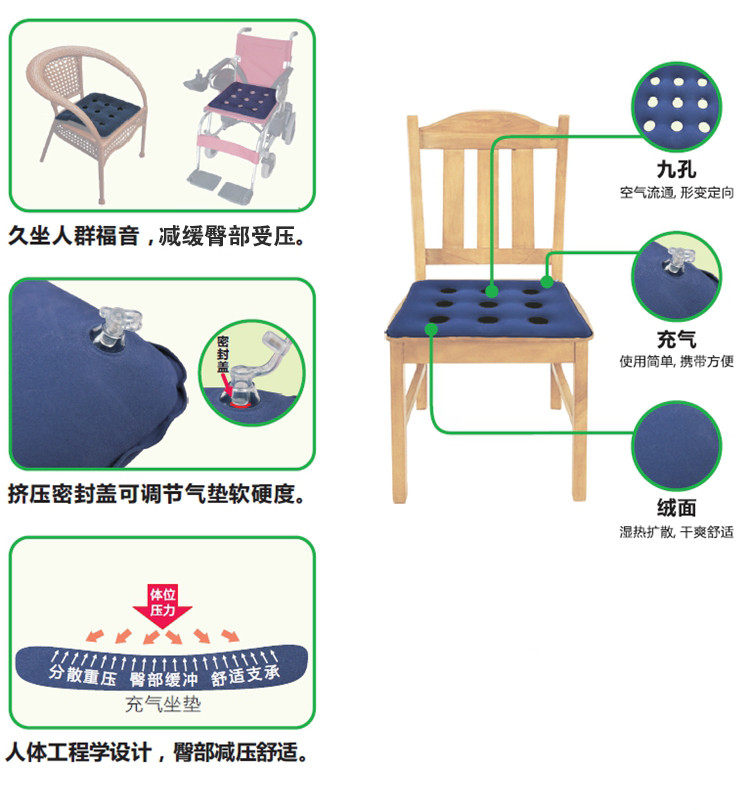 Air cushion breathable square thick inflatable cushion enlarged elderly pressure sore seat gasket wheelchair air cushion cushion suede winter