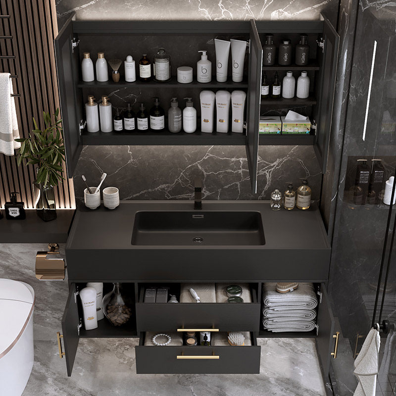 Light Luxurious Bath Room Cabinet Composition Minima Modern Makeup Room Mirror Cabinet Suit Wash Wash Basin Rock Integrated Wash Table
