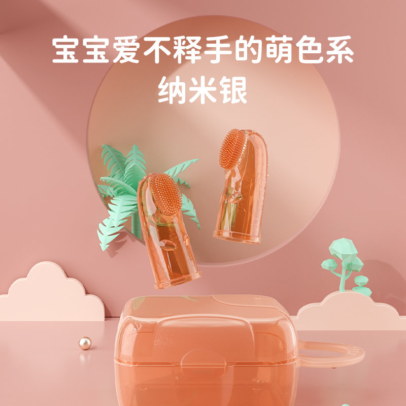 Little Dinosaur Finger Set Toothbrush - Nano Silver 2 Packs (Send High-grade Storage Box)